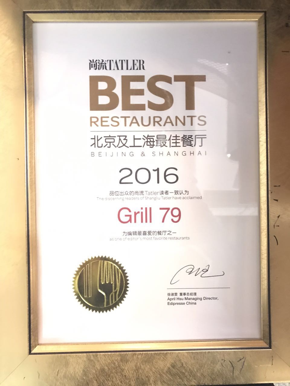 橄榄画报年度最佳西餐及红酒餐厅-GRILL79