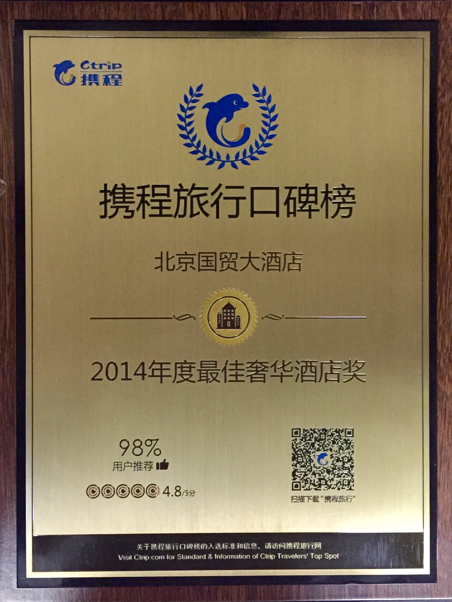 携程旅行口碑榜--2014年度最佳奢华酒店奖