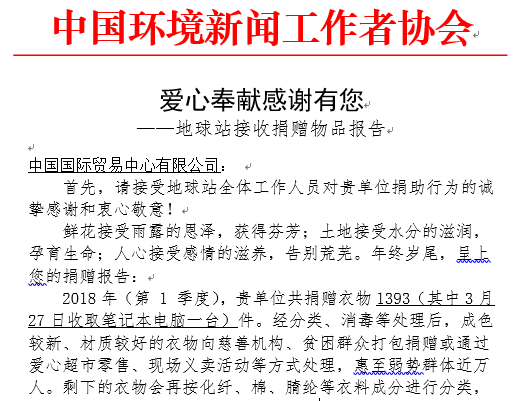 爱心奉献感谢有您 ——地球站接收捐赠物品报告