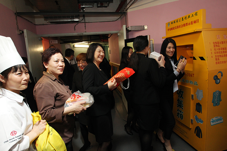 2月至4月收集箱摆放国贸大酒店期间,酒店先后组织了三次集中捐赠。每一次捐赠前都做了充分的动员和宣传工作。从捐赠箱落地到暂别,酒店都举办了简单庄重的仪式。在众人见证下投放物品的那一刻,参与者能深深感受到奉献的荣光和快乐;而捐赠箱位置的便利性也让大家在日常中体会到举手之劳献爱心的乐趣。