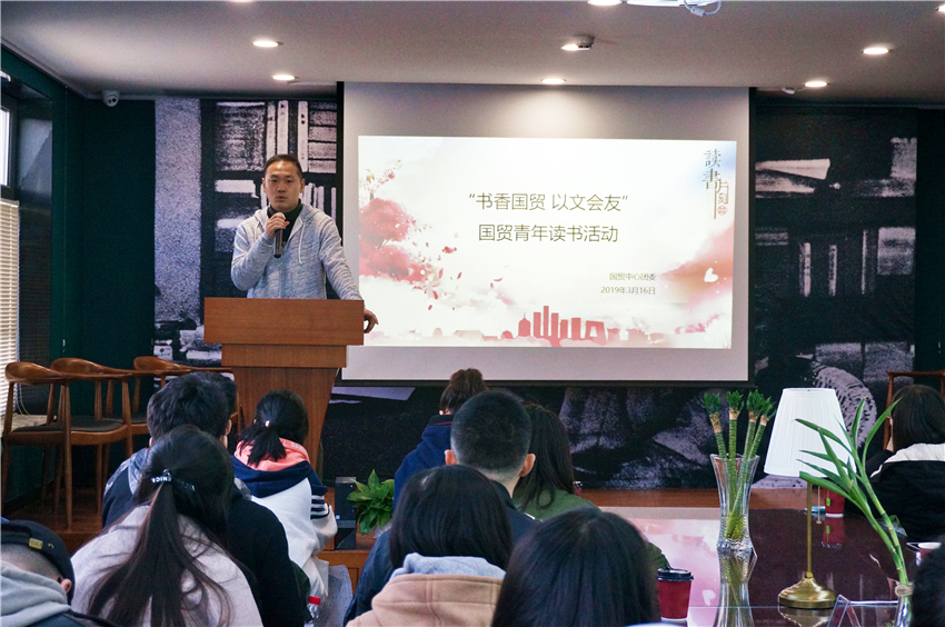 几处早莺争暖树,谁家新燕啄春泥,在五四运动100周年的早春时节,经中心党委领导批准,国贸中心团委于3月16日举办了以“书香国贸 以文会友”为主题的读书分享会及参观活动,国贸中心党委委员李文柱受邀出席,国贸中心各部门50余名团员青年报名来到现场。