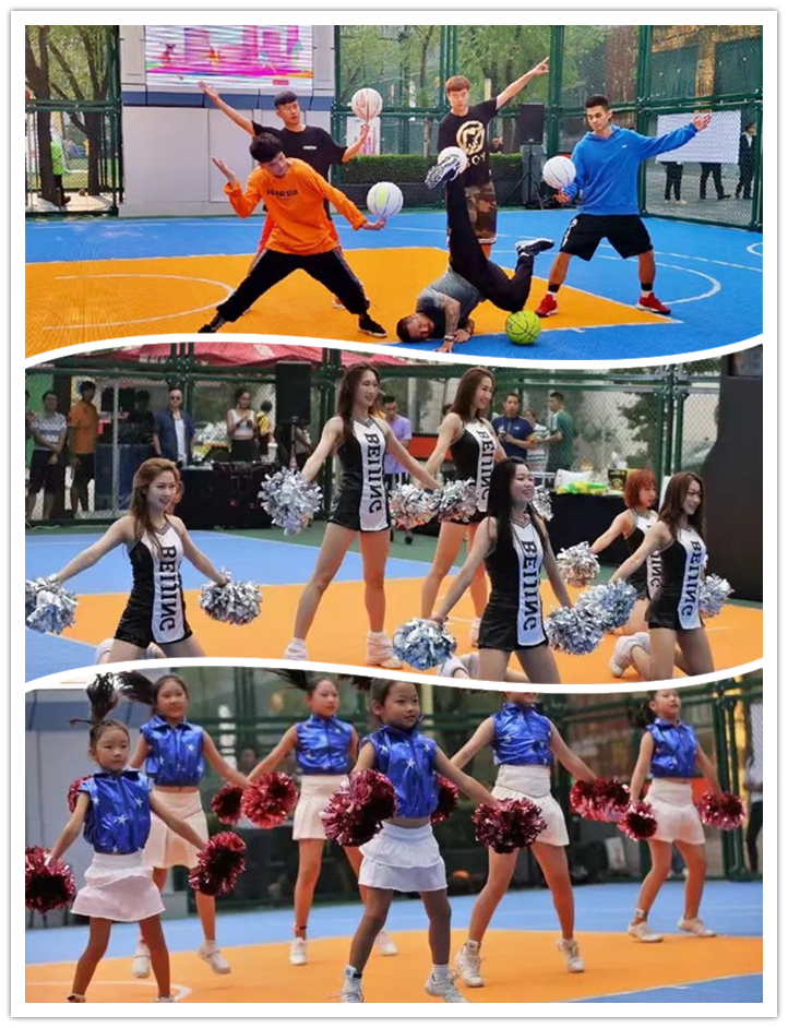 花式篮球表演和小小篮球拉拉队的精彩表演为比赛吹响了对战的号角,当晚参加比赛的12支队伍分别是物管公司队VS国贸写字楼联队、国贸商城队VS国贸大酒店队、中国大饭店队VS国贸保安部队、新国贸饭店队VS网星会展联队、中国银行队VS春华队、中金队VS仲量联行队。