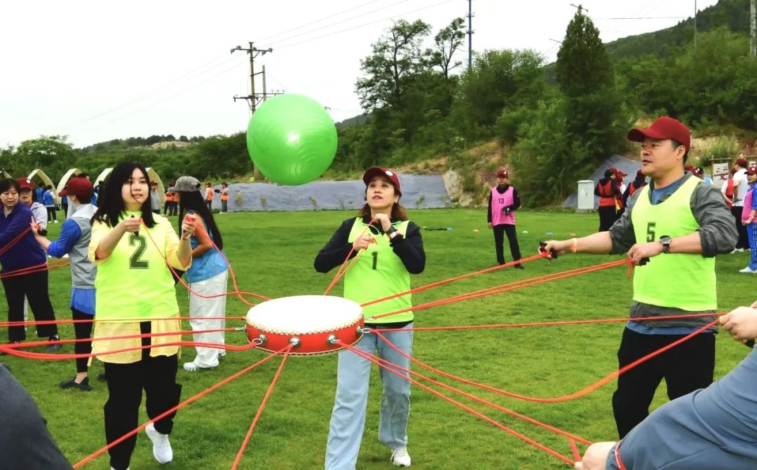 团建活动内容共有5项,包括齐心敲鼓、疯狂旋风跑、撕腰旗大战、飞盘九宫格和企鹅漫步。每批员工分成10队。每队队长调兵遣将,队员们出谋划策,分工协作、齐心合力完成每一项任务。比赛过程紧张、激烈,大家在相互鼓励、相互沟通、相互配合中收获了信任和友谊,在你追我赶中激发了斗志。团建场地洋溢着青春、欢乐、热情的浓厚气氛。