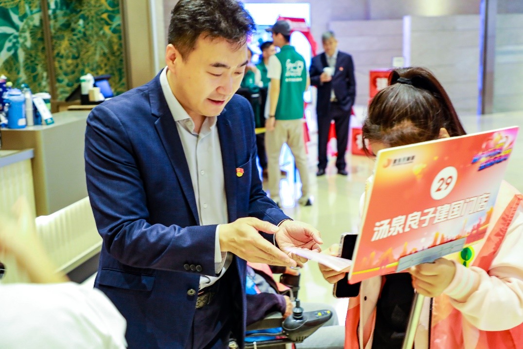 在体验过程中,党员志愿者们全程陪伴在残障人士身边,为他们保驾护航。为了让残障人士更好地享受购物和休闲的乐趣,志愿者们还积极协助他们与商家进行沟通交流。沿途的一些咖啡品牌商户如Manner Coffee、星巴克等也热情地为残障人士提供免费咖啡、茶水。