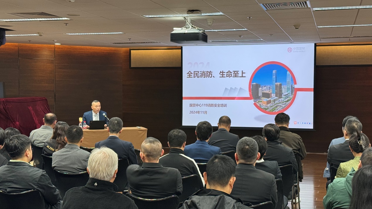 全民消防,生命至上。在第33个全国消防日来临之际,为进一步增强国贸中心员工消防安全意识,切实提高员工自防自救能力,国贸中心工会于2024年11月7日邀请中心保安部副总监崔广兴为员工作消防安全讲座。来自各部门的40余名员工聆听了讲座。