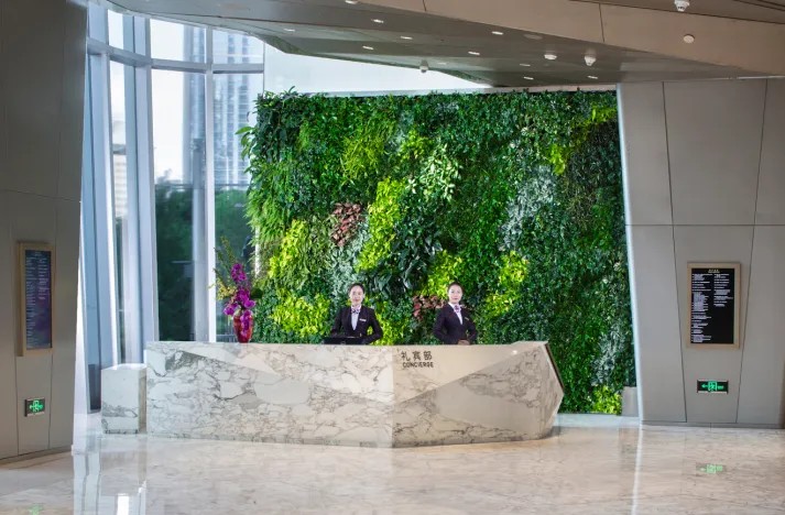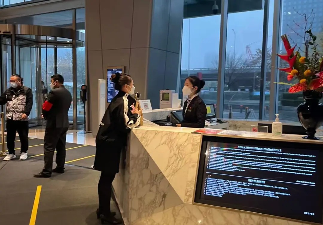 她们的工作点有个特别之处:不仅在一层迎接八方宾客,还在国贸大厦A座和B座的空中大堂为访客提供服务。这样的双礼宾岗设置,在北京的超高层写字楼中独一无二。从世界500强企业高管到各国贵宾,都能感受到她们专业细致的服务。