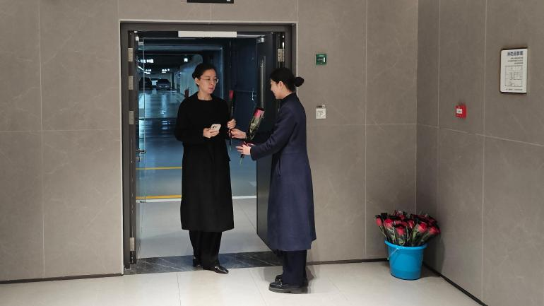 3月8日当天,提前准备好的物业工作人员早早地站在大厦入口处,手捧鲜花,笑容满面地等待着每一位女性业主的到来。当业主们踏入大厦时,工作人员便热情地将花束递到她们手中,并送上一句真挚的“妇女节快乐”。接过鲜花的业主们惊喜不已,脸上洋溢着灿烂的笑容,不少人当场与物业工作人员合影留念,记录下这一温馨时刻。