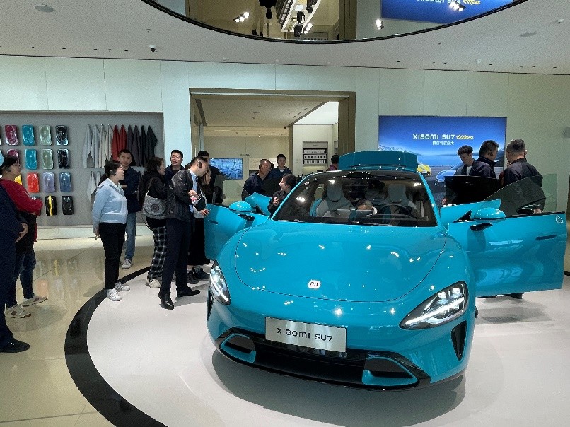 随后,进入汽车展厅了解车辆信息,观赏和体验小米SU7和SU7 Ultra的外形、内饰和空间。