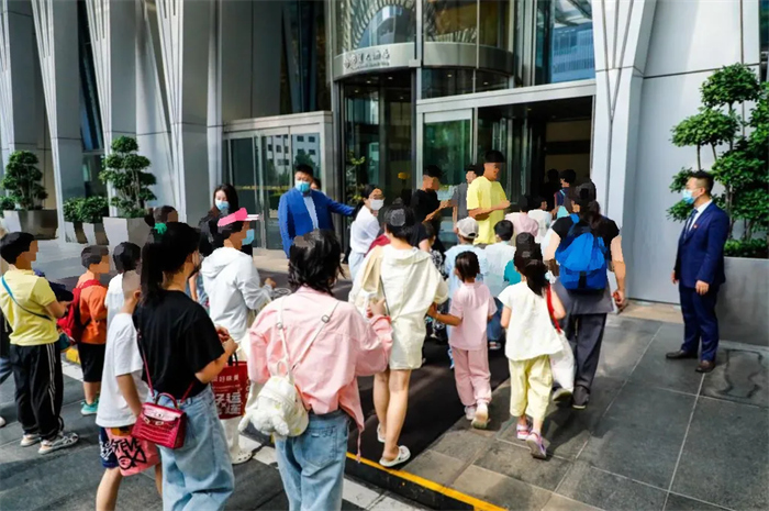 清晨,党员代表早早前往燕郊医院驻地接孩子们。一路上,小朋友们兴奋地望着窗外景物,听国贸商城党员给他们讲述国贸故事。很快,大巴抵达国贸中心,国贸商城党支部全体党员在国贸大酒店热情迎接。