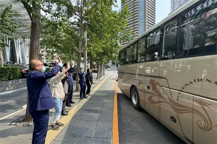 最后,国贸商城党员送孩子们上大巴,温柔道别,祝福他们健康成长,与孩子们隔窗挥手道谢,依依不舍,情谊浓浓。