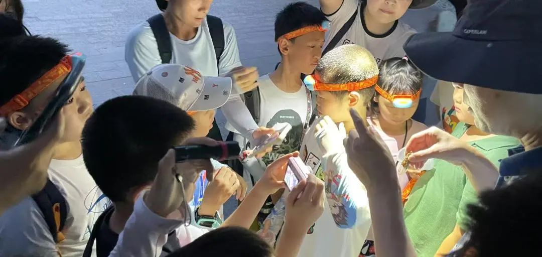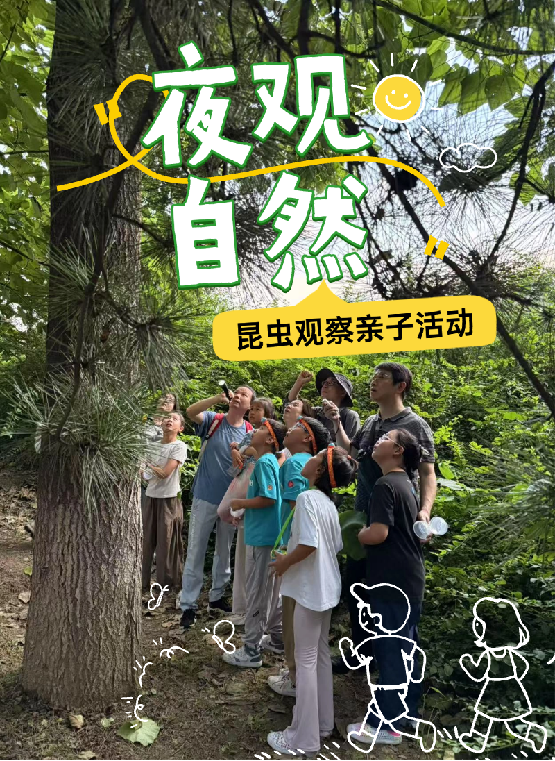 家长与孩子们佩戴头灯,在导师带领下,使用观察盒等工具,近距离观察夜间昆虫的生活习性,学习生态知识。