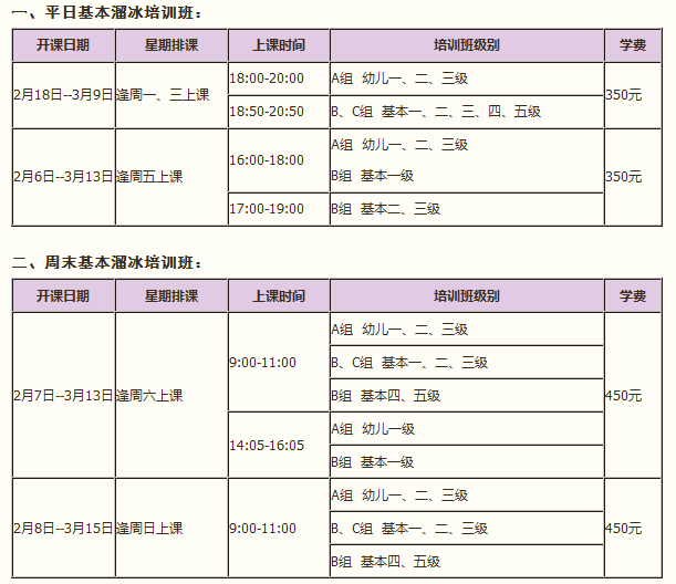 注:1、如本冰场不能按期开班将会另行通知,敬请学员谅解。