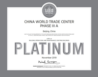 国贸大厦A座荣获美国绿色建筑协会颁发的LEED能源与环境设计铂金奖。国贸大厦B座荣获美国绿色建筑协会颁发的LEED能源与环境设计金奖。