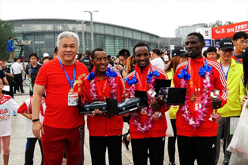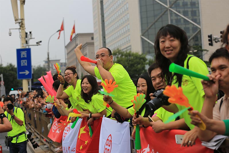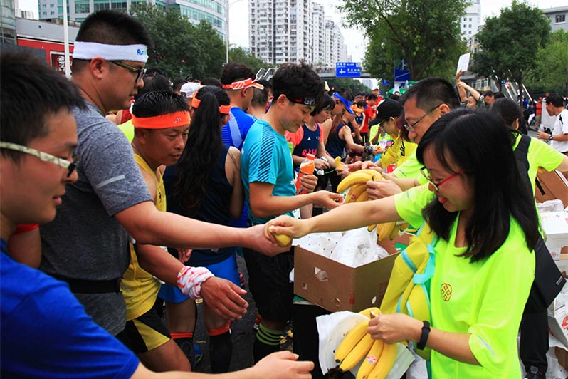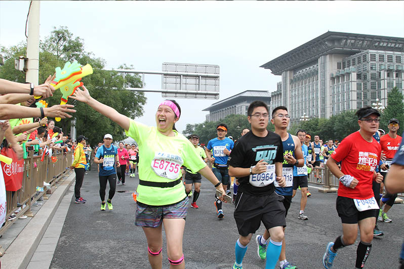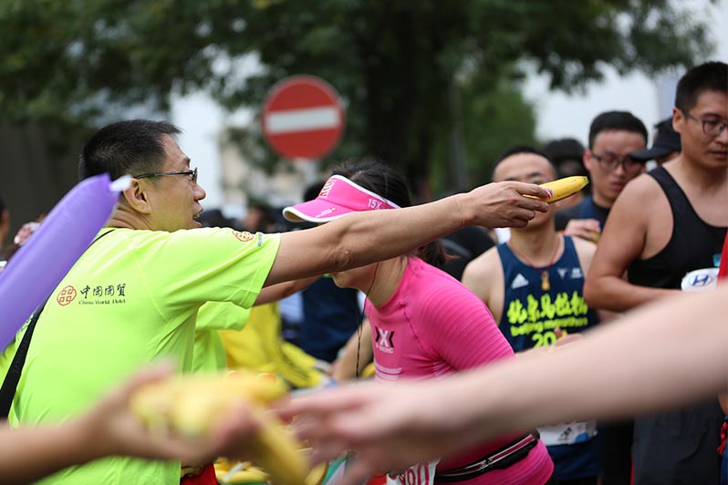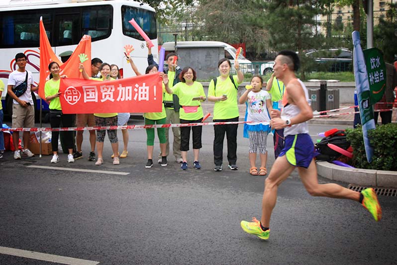 感谢国贸,国贸组织非常棒,全方位的装备发放:服装、腰包、实时贴、横幅;摄影师团各个路段拍摄精彩镜头;国贸助威团帅哥靓女齐上阵;感谢中国大饭店健身中心,赛前安排每周跑马分享会,有专业资深运动学院的老师讲解跑马知识。你们每天都工作到很晚,使大家今年的北马跑得非常完美,您们辛苦啦!