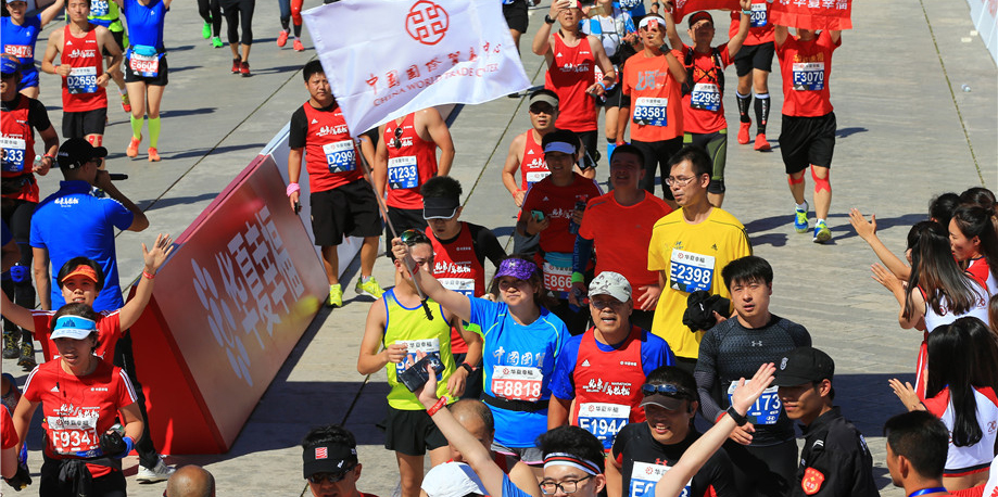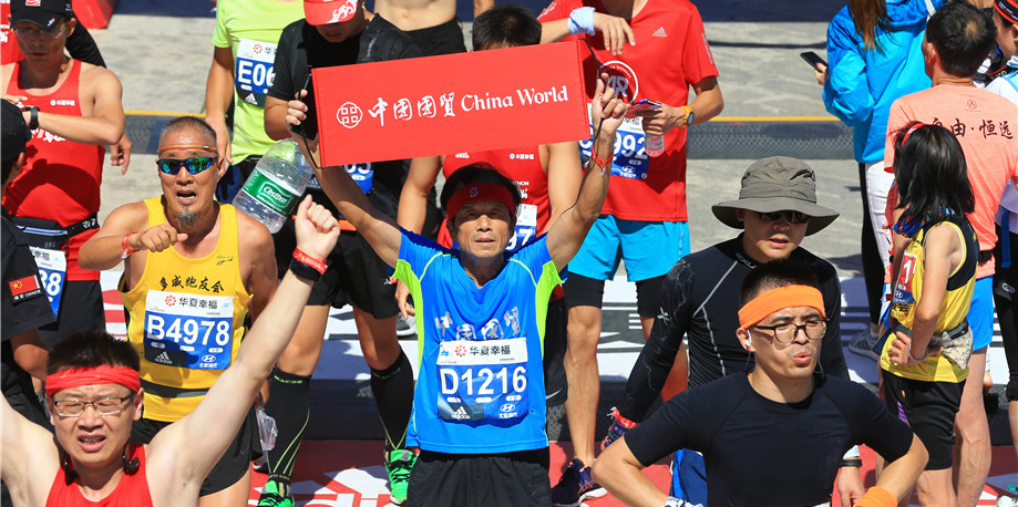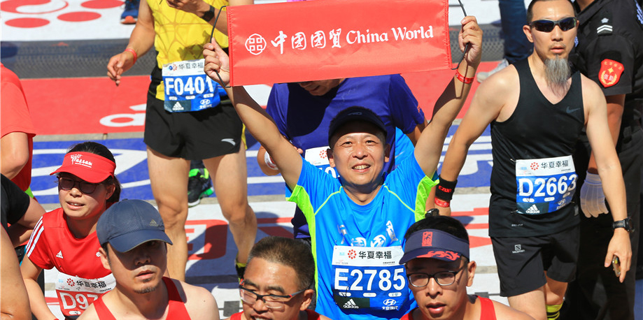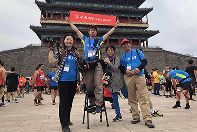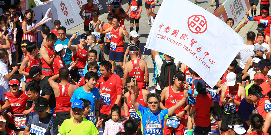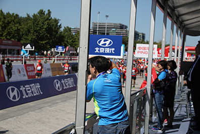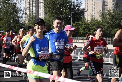 此时,恍恍惚惚,进入地铁站,北马选手四面而来,尽管互不相识,但微笑、点头、致意,轻松的感觉油然而生。在前门站下车,跟着人流快步经过安检区、检录区、存包区,我的步伐也越来越快,当在出发等候区看见那些亲切的国贸跑团队友时,感受到他们的关心、热情和斗志时,我的信心倍增。