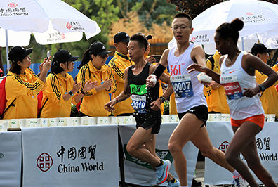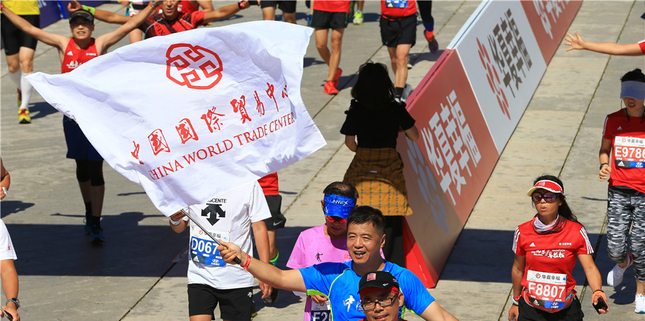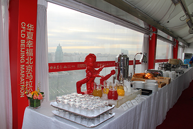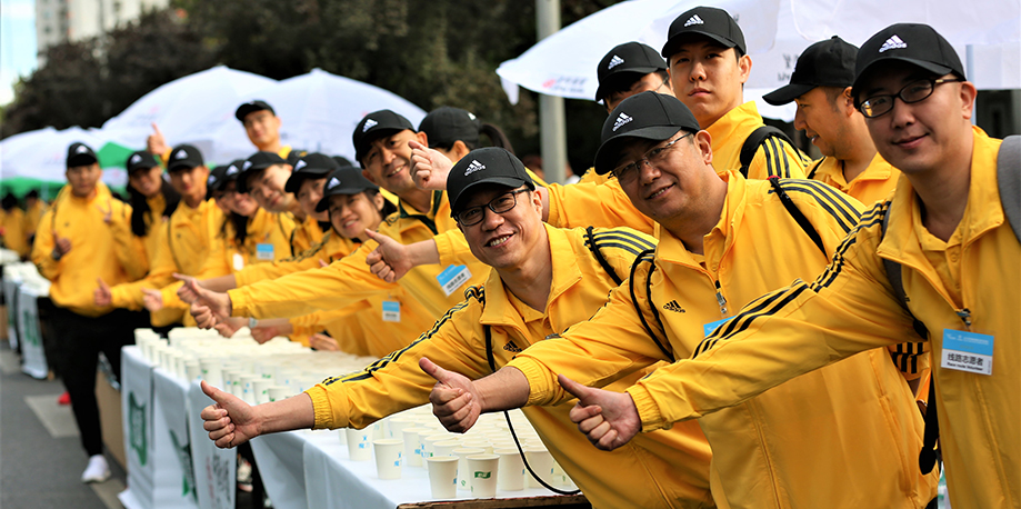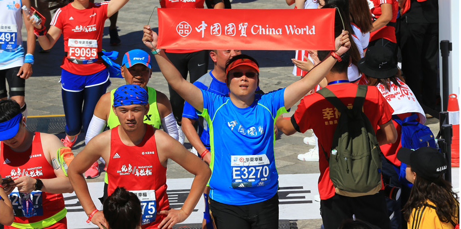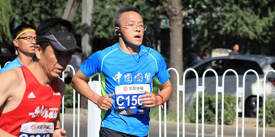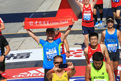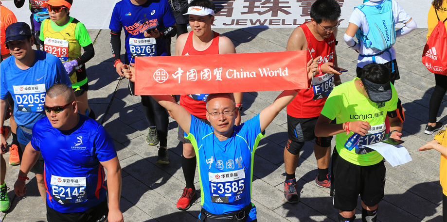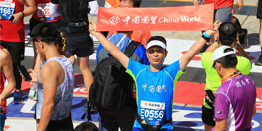 7:30发令枪响,3万人同时起跑,一路向西,穿过熟悉的长安街,沿途志愿者、啦啦队、市民的加油助威此起彼伏,简直不是一个“壮观”可以形容。12.5公里蓝靛厂服务站,以及之后每10公里的服务站都有国贸人的身影相伴,特别是在最为艰难的30多公里林萃桥还有国贸私补站。一路上遇到的每一个穿着国贸跑服认识或不认识的国贸人都在相互鼓励。听到一位74岁的老先生边跑边说 “这已经是我第五年跑北马了”,我心中的感佩油然而生。这些所见所闻对我都是莫大的鼓舞,漫长的旅程似乎变得没那么遥不可及。最终,我以4小时42分钟的成绩光荣完成了北马首战。
